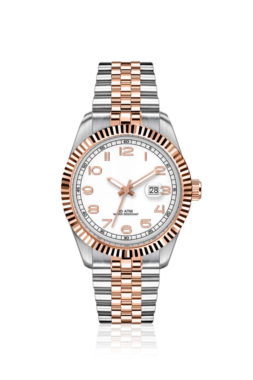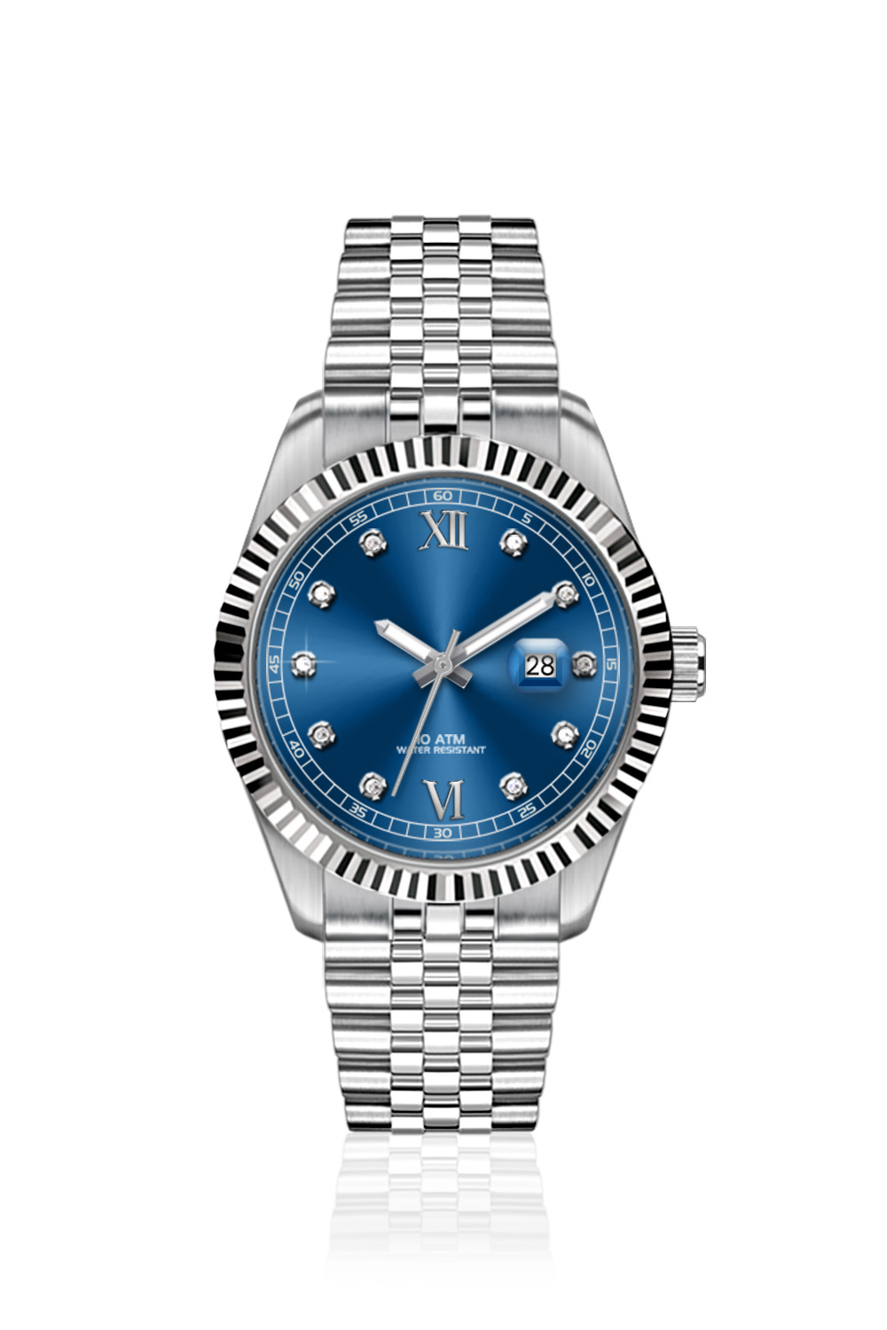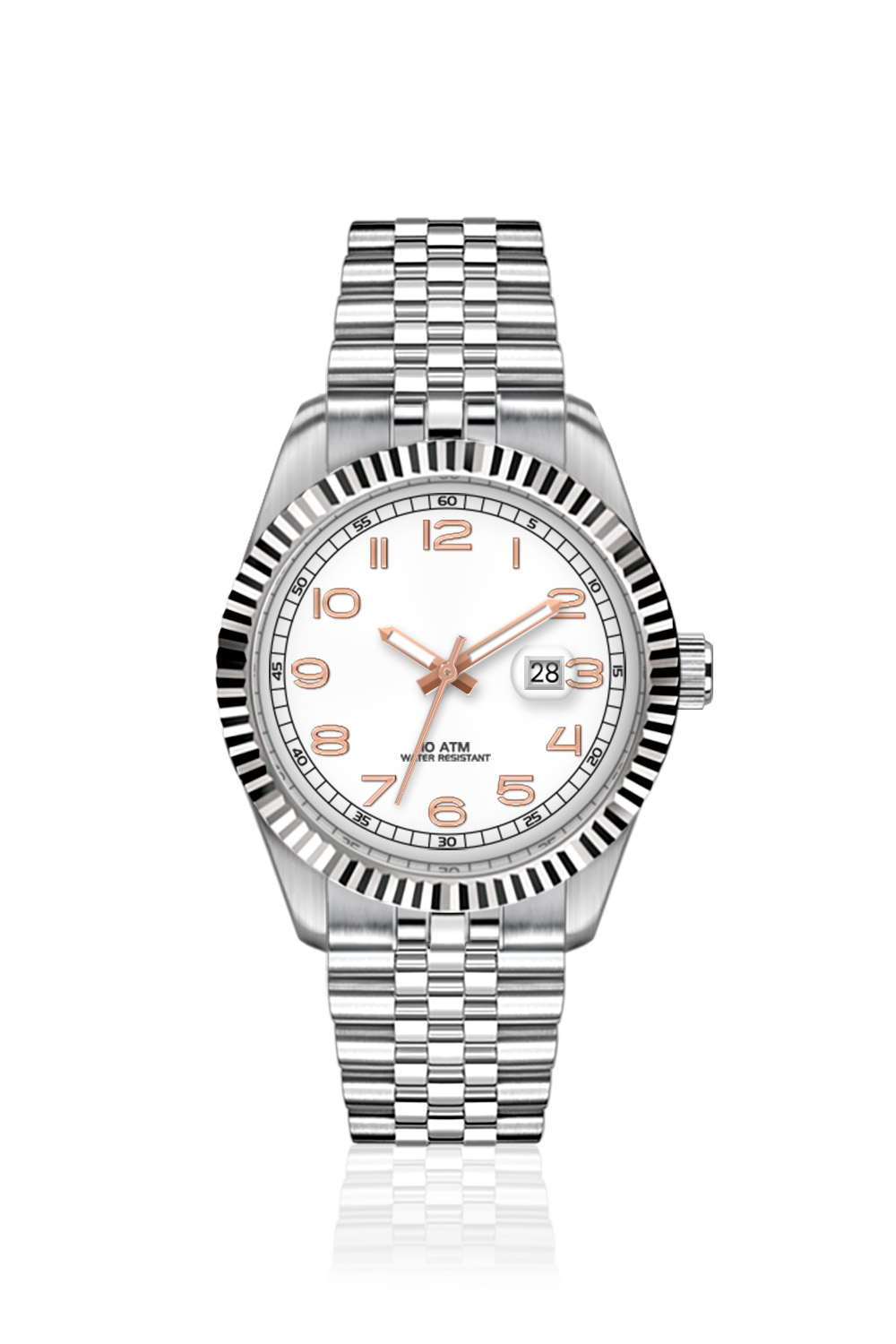 stainless steel Case - shiny / brushed / Gold Finishing - Diameter ø 31 mm - Case thickness 8 mm - mineral Glass - Dial opening ø 25 mm - shiny Dial with applied roman numbers and stones, printed minute track - stainless steel screw Crown - stainless steel screw Case Back - Movement 2015 Miyota - Functions hours, minutes, seconds, date - 16 mm stainless steel solid shiny / brushed Band - solid stainless steel butterfly Buckle - WaterResistant 10 ATM - Weight 71 gr.