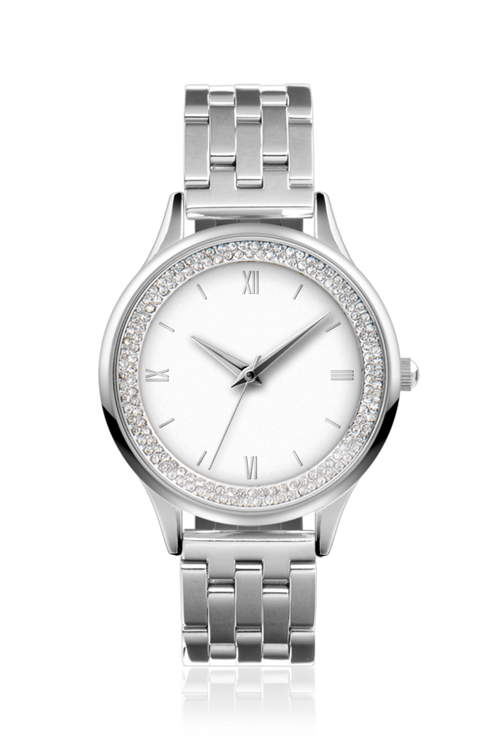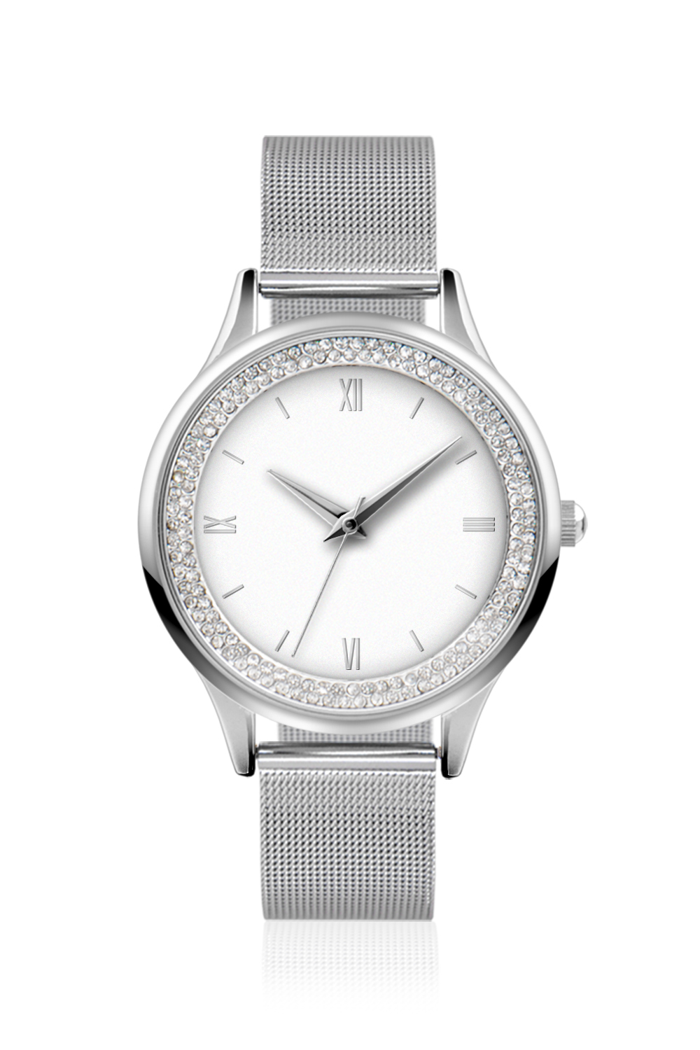 Metal Case - shiny PNP Finishing - Diameter ø 36 mm - Case thickness 8 mm - mineral Glass - Dial opening ø 26 mm - white shiny Dial with label indexes, 140 applied stones - stainless steel snap Crown - stainless steel snap Case Back - Movement PC21 TMI - Functions hours, minutes and seconds - solid stainless steel / stainless steel mesh Band, 18 mm - Water Resistant - Weight 60 gr.