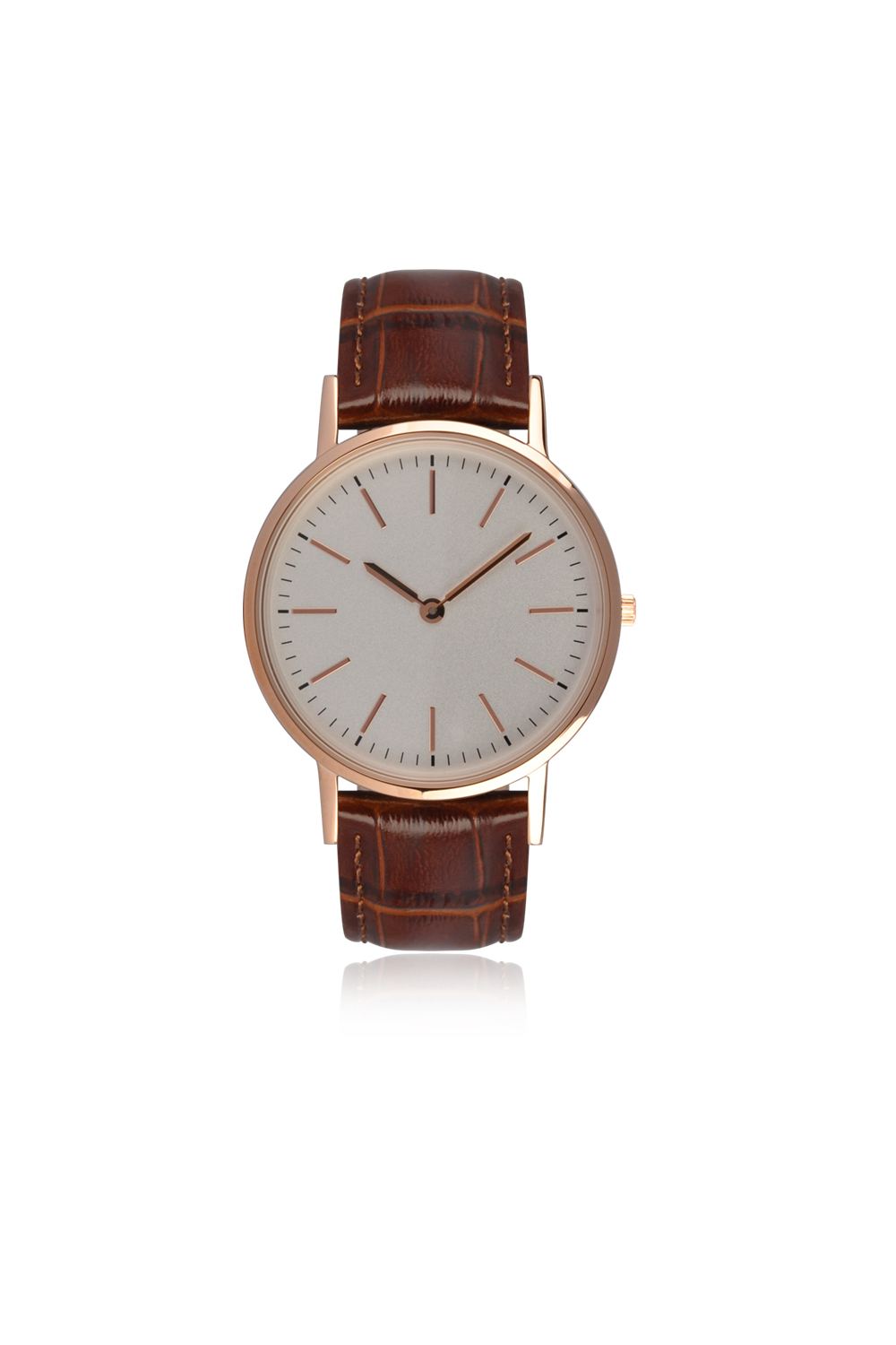 Cassa acciaio - Finitura lucida, rosegold - Diametro ø 36 mm - Altezza cassa 5,5 mm - Vetro minerale - Apertura quadrante ø 30 mm - Quadrante opaco, indici applicati - Corona acciaio chiusa a pressione - Fondello acciaio chiuso a pressione - Movimento GL20 slim Miyota - Funzioni ore, minuti - Cinturino vera pelle stampa cocco, 20/18 mm - Fibbia acciaio - Water Resistant 3 ATM - Peso 30 gr.