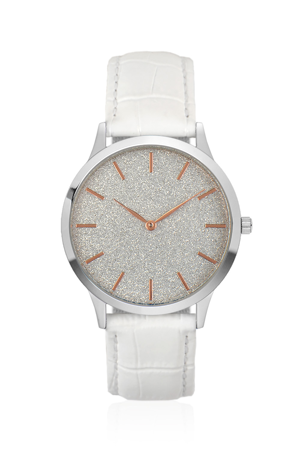 stainless steel Case - PNP shiny Finishing - Diameter ø 36 mm - Case thickness 5 mm - mineral Glass - Dial opening ø 32 mm - glitter Dial with applied indexes / matt dial with arab numbers - stainless steel snap Crown - stainless steel snap Case Back - Movement SLIM SWISS PARTS Ronda 762 - Functions hours, minutes - 18 mm stainless steel mesh Band - stainless steel Buckle - WaterResistant 3 ATM - Weight 71 gr.